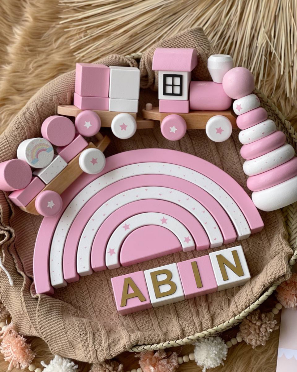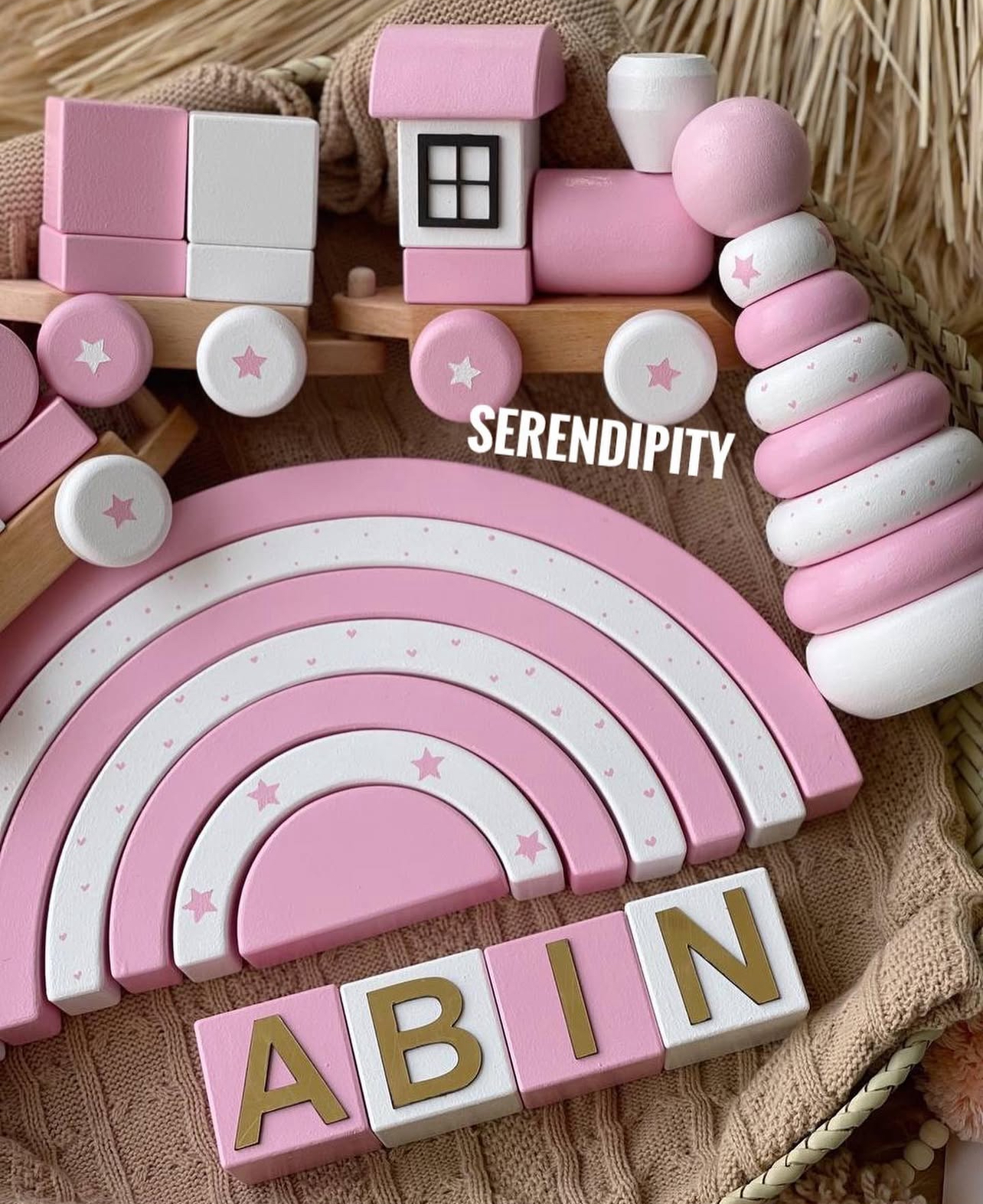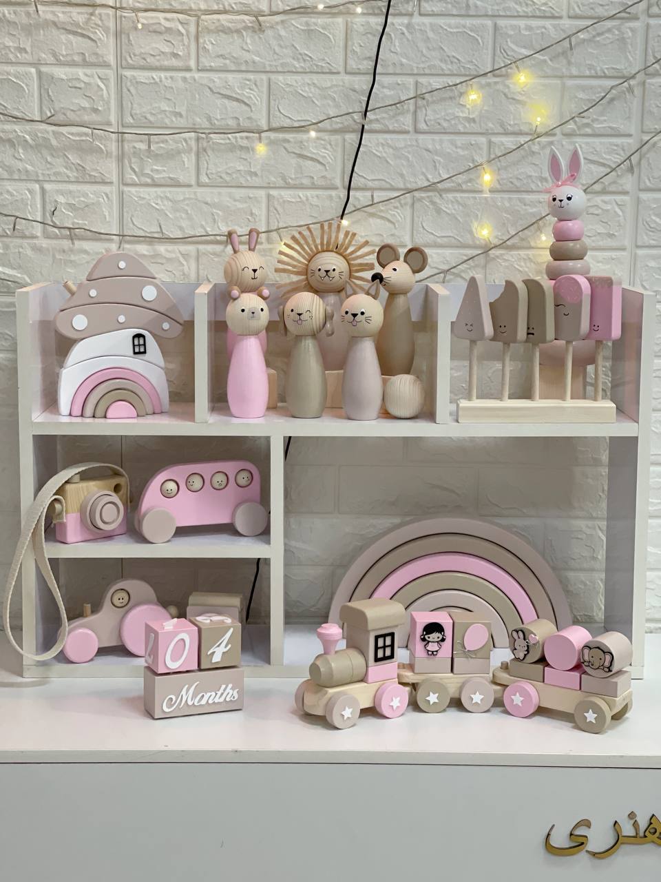 اسباب بازی چوبی صورتی دخترونه قطار چوبی مونته سوری رنگینکمان چوبی مکعب اسم۴٬۸۸۰٬۰۰۰ تومان