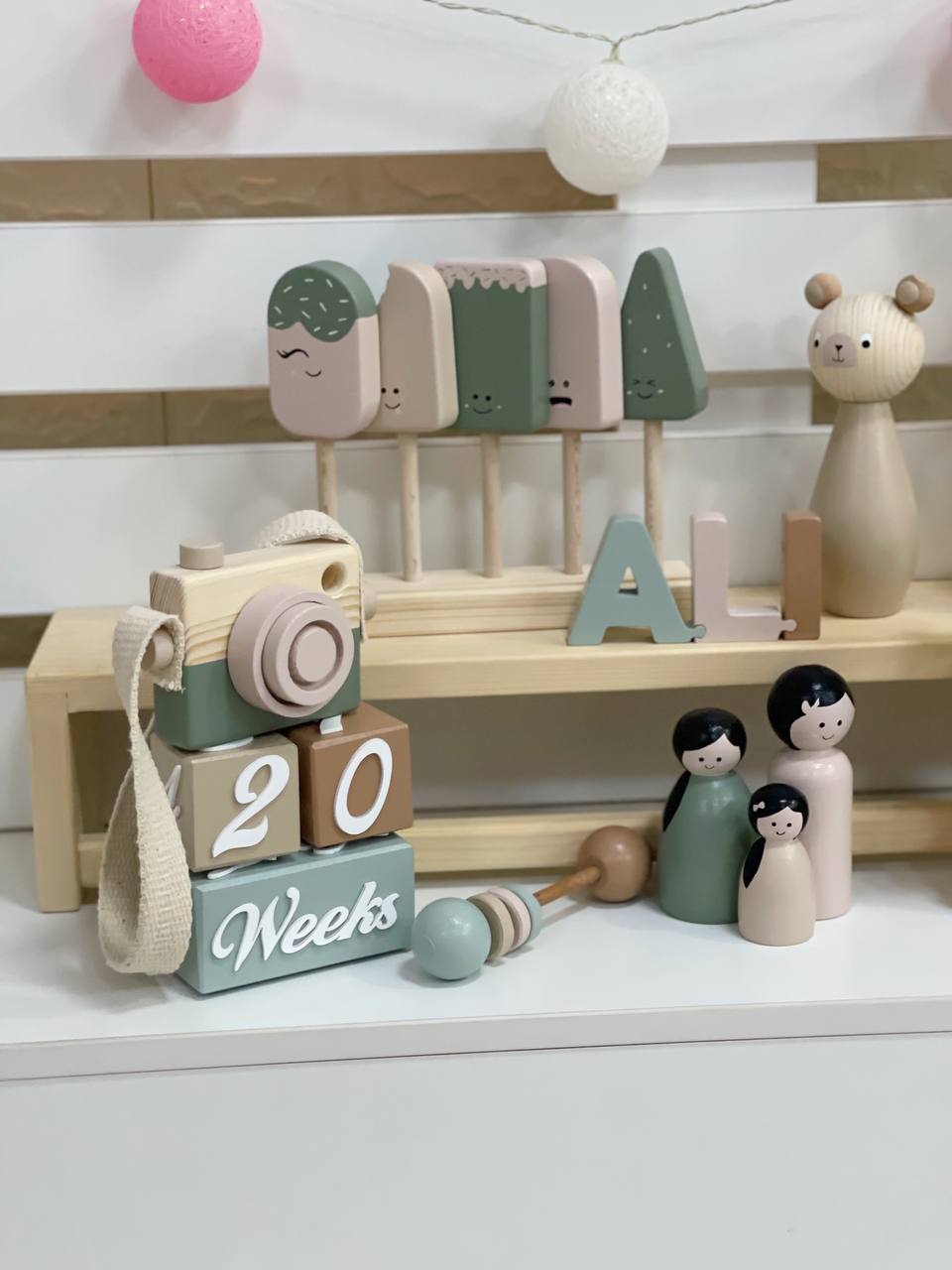 اکسسوری چوبی کودک مکعب اسم و گاهشمار و آدمک چوبی طوسی و سفید۱٬۷۹۰٬۰۰۰ تومان