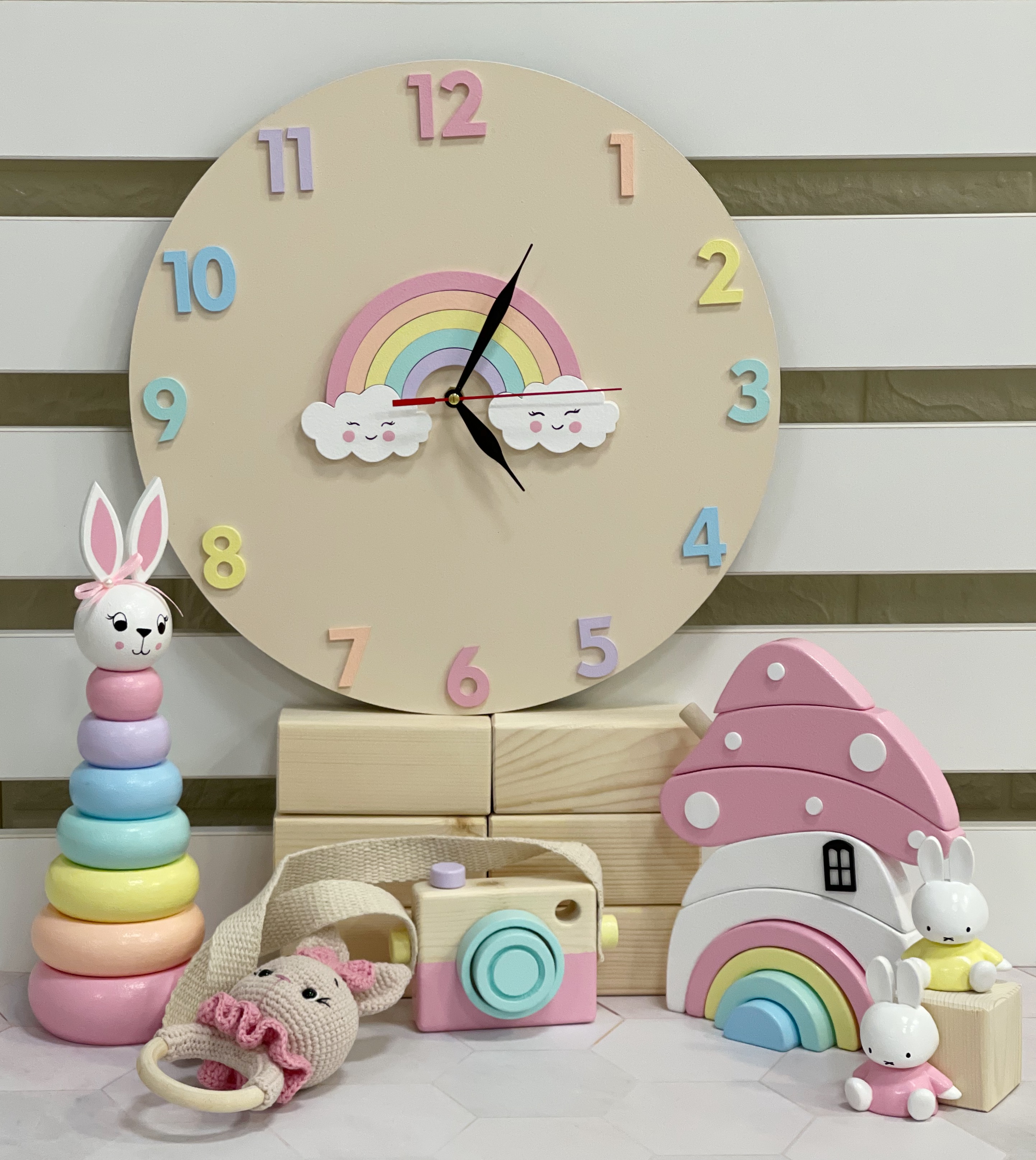 ساعت دیواری اتاق کودک طرح رنگینکمان