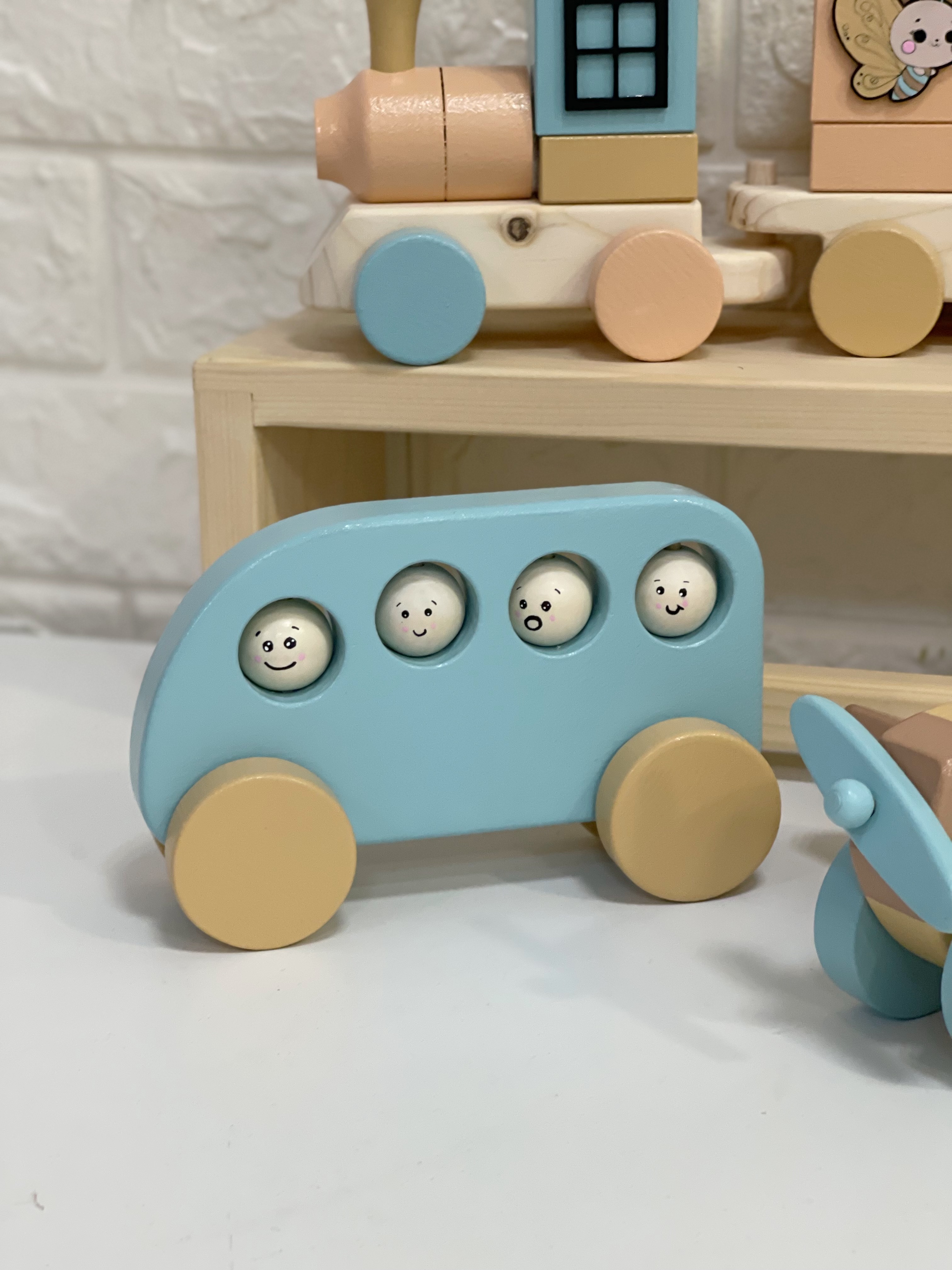 قطار چوبی مونته سوری دوربین چوبی کودک اتوبوس چوبی رنگبندی خاص