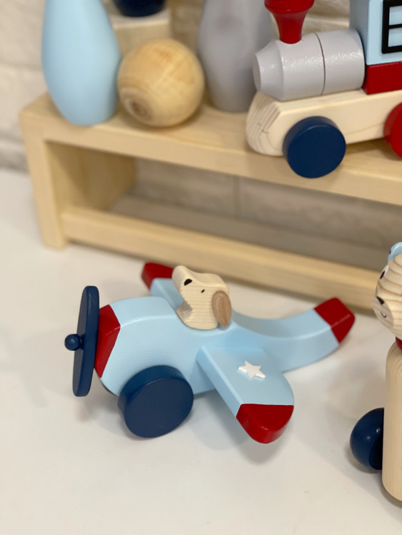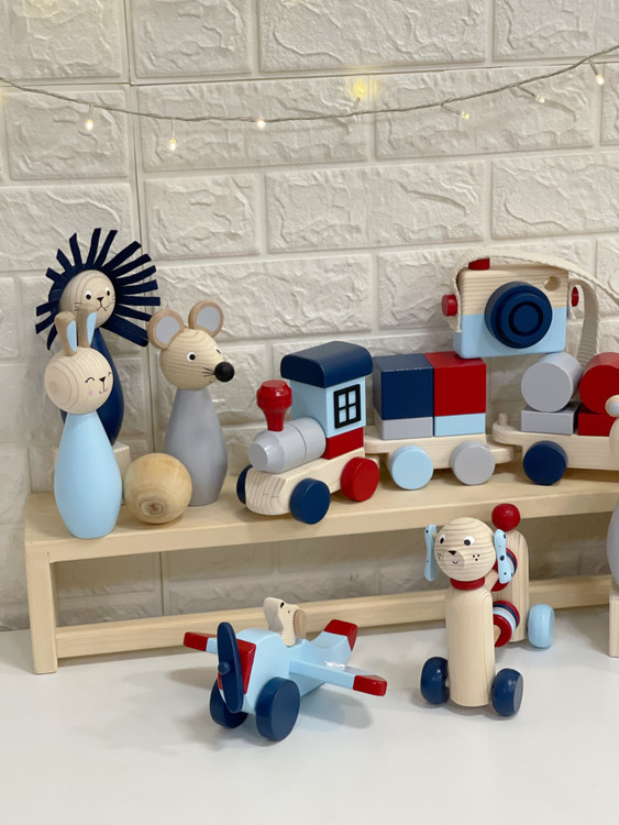 ست چوبی رنگهای ملوانی بولینگ حیوانات سگ شکم حلقه قطار چوبی و دوربین