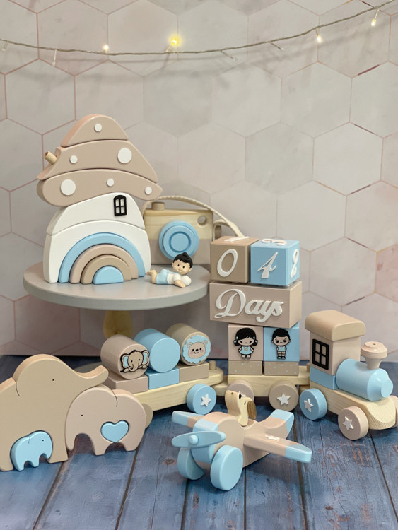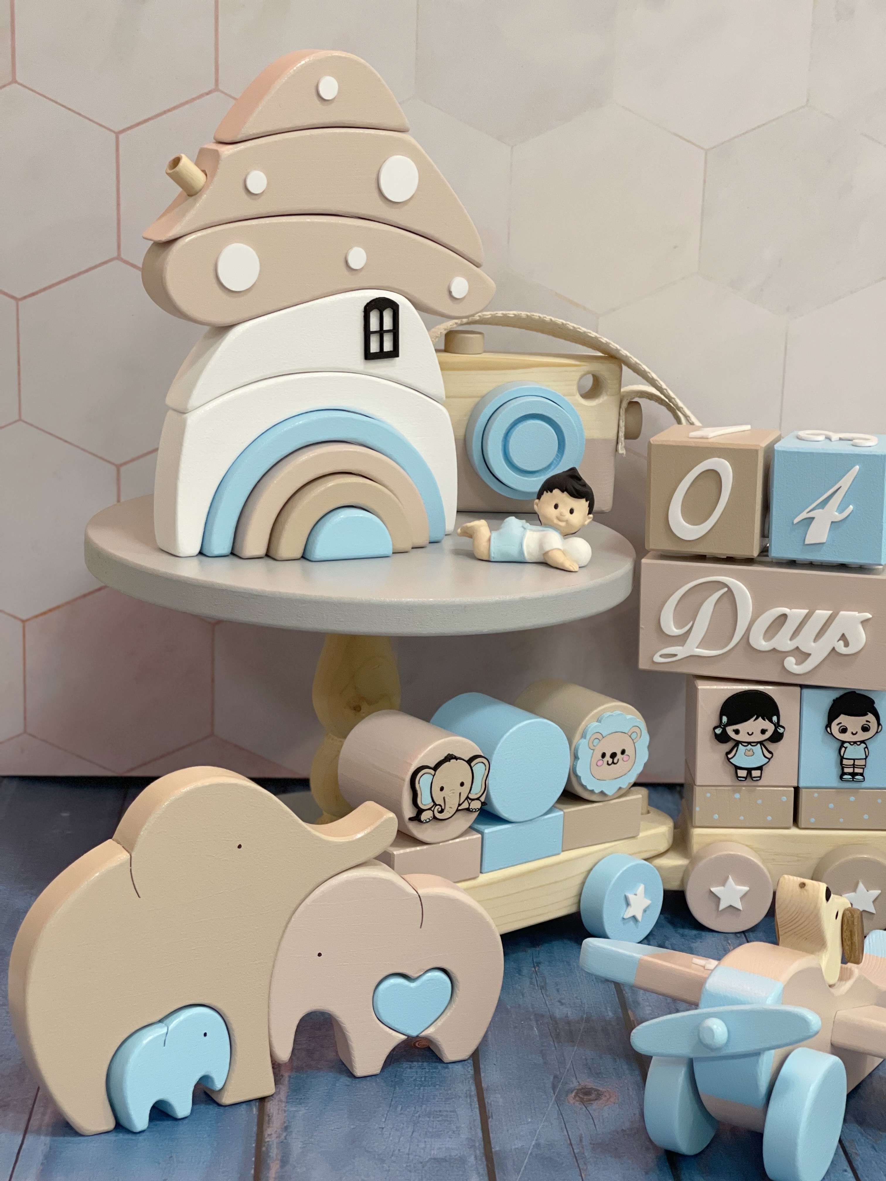 این ست انتخابی فوقالعاده برای دکور اتاق نوزاد پسر، هدیه تولد یا عکاسی نوزادی است. ملایم، تمیز و پر از حس آسمون 🌤️