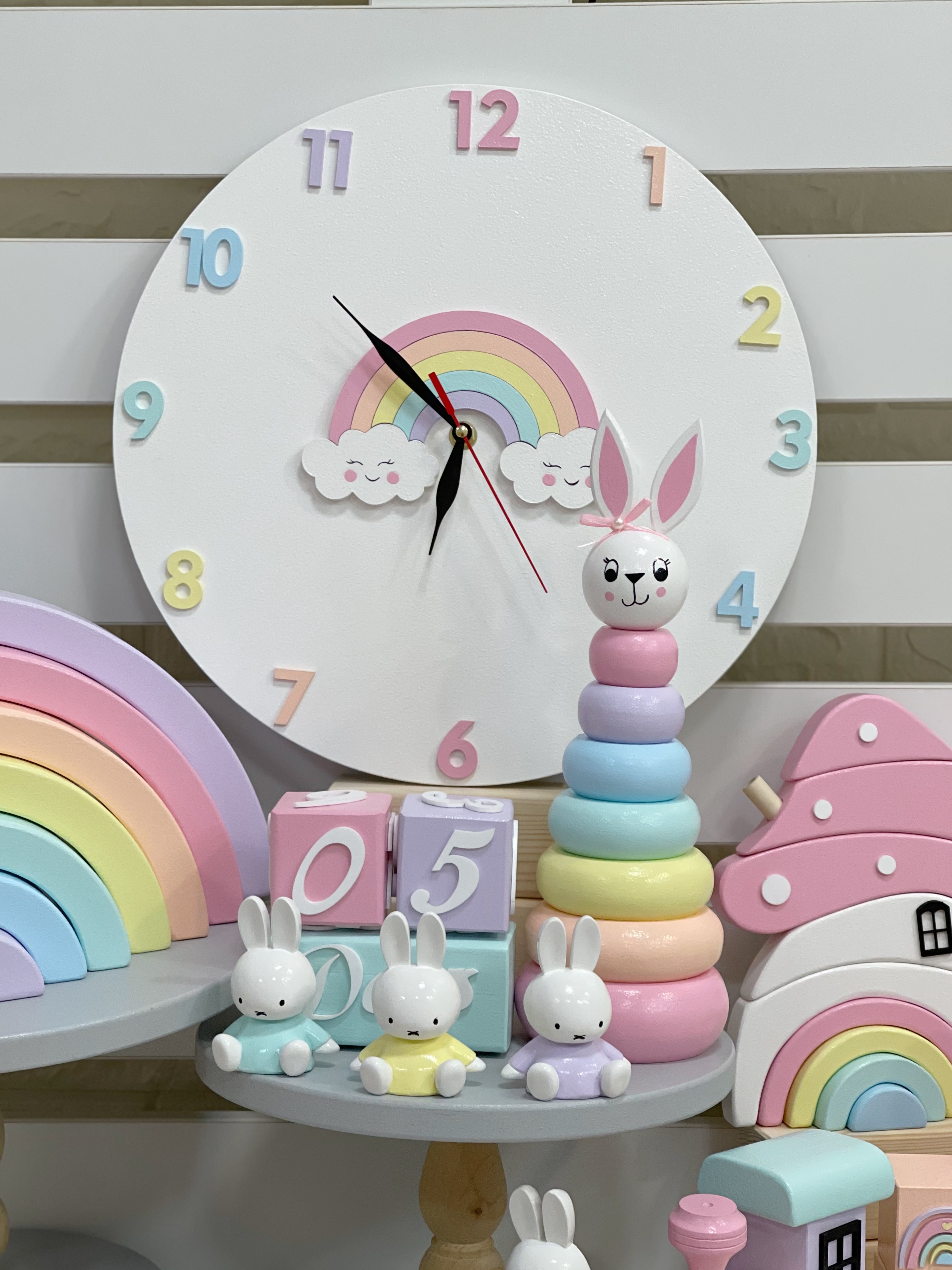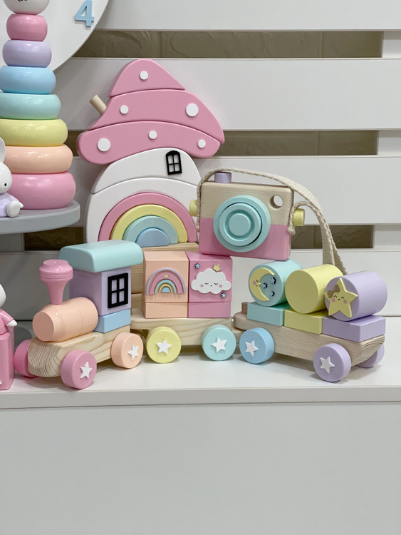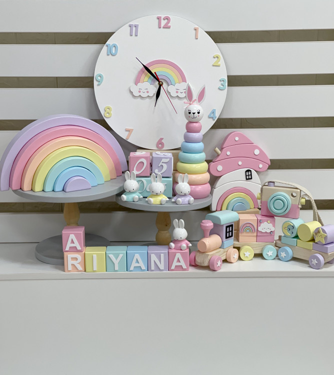 ست کامل چوبی پاستلی | دکور و اسباببازی آموزشی کودک