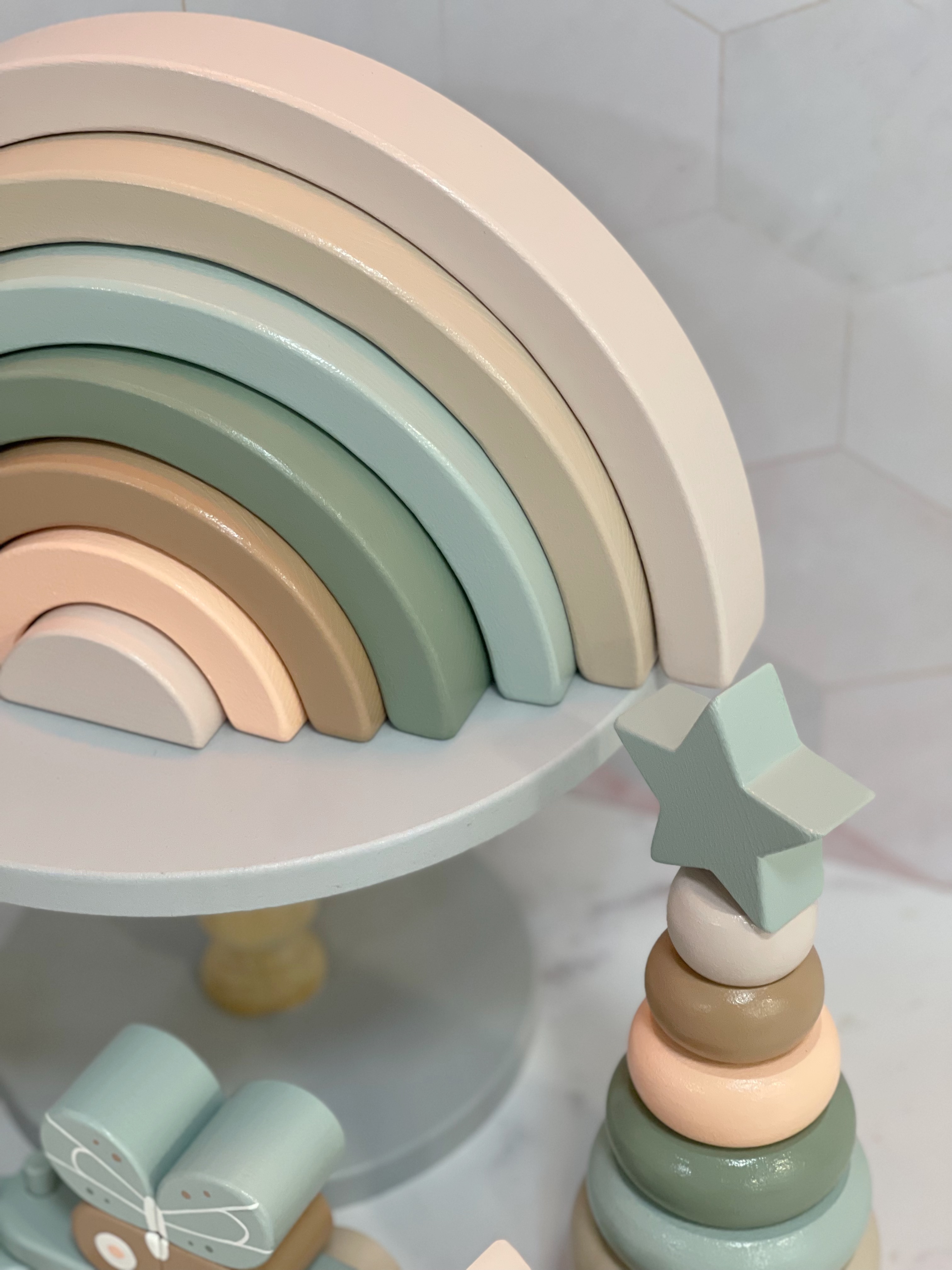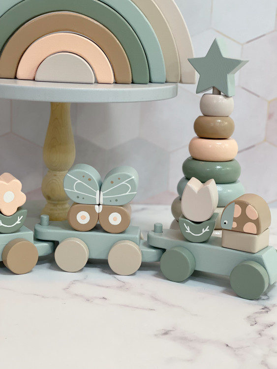 این محصولات از چوب باکیفیت و با دقت بالا ساخته شده و با رنگهای ملایم و کودکپسند طراحی شده است 🌿🤍