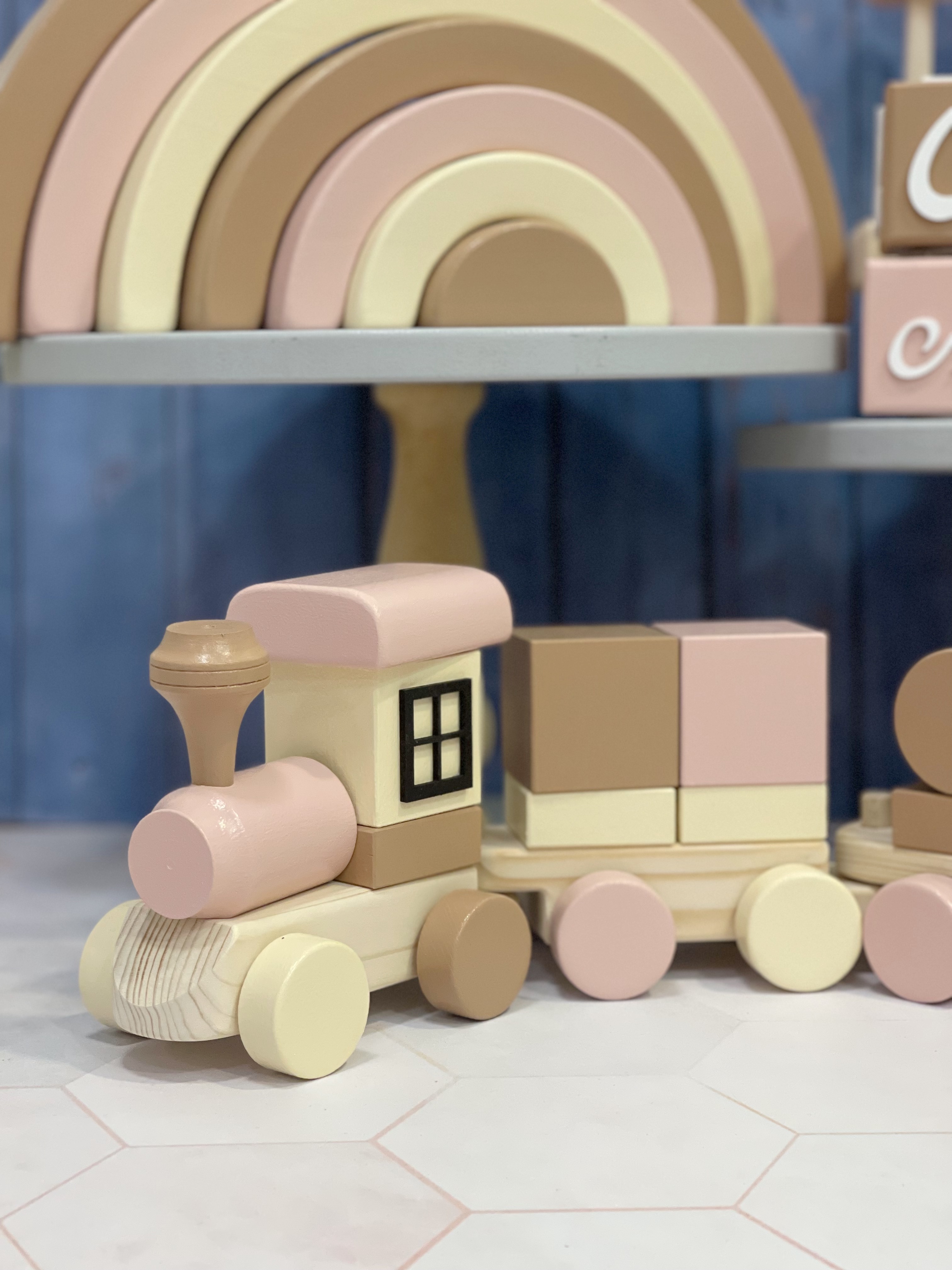 ست اسباب بازی های چوبی | رنگهای کالباسی و نسکافه ای