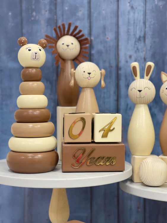 ست اسباب بازی های چوبی | رنگهای قهوهای نسکافه ای کرم