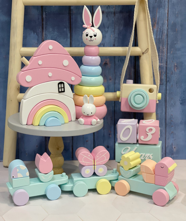 این محصولات از چوب باکیفیت و با دقت بالا ساخته شده و با رنگهای ملایم و کودکپسند طراحی شده است 🌿🤍