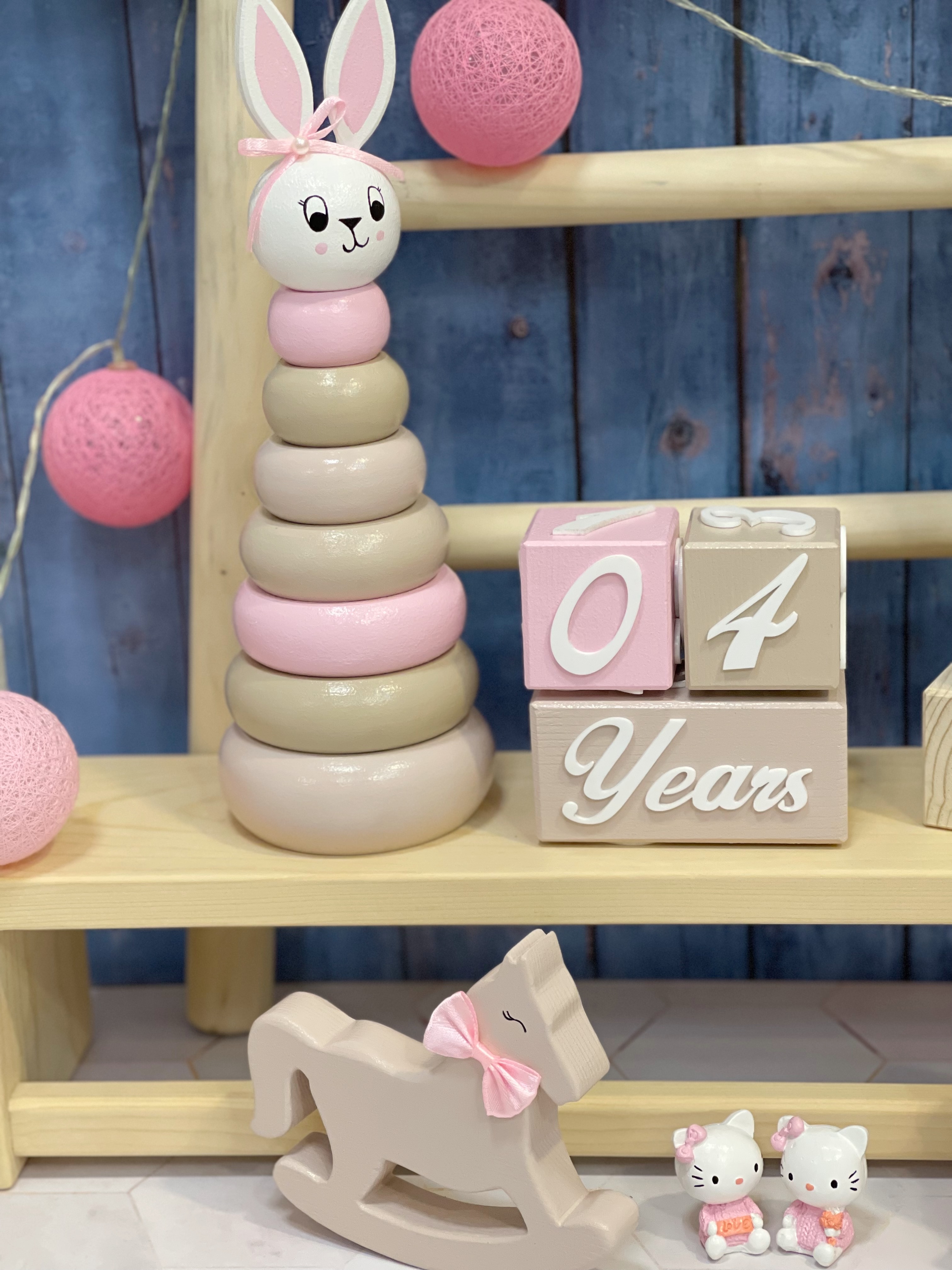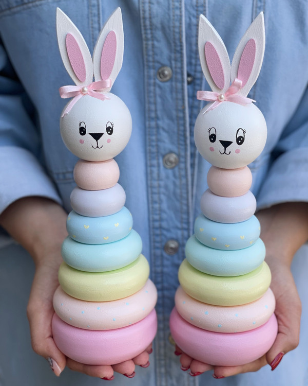 🩷 برج هوش خرگوشی چوبی – اسباببازی آموزشی مونتهسوری