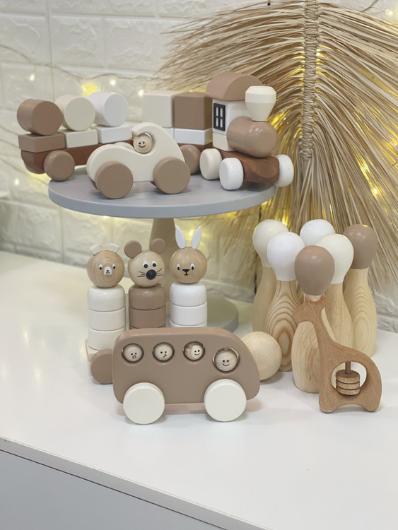 این اتوبوس چوبی دوستداشتنی، با راننده و سه مسافر بانمک طراحی شده و لحظاتی سرگرمکننده و شاد برای کودکان ایجاد میکند 🎨✨
