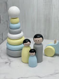 این ست آدمک چوبی خانواده شامل سه نفر (والدین و نینی) است و به والدین این امکان را میدهد که نینی را با جنسیت دلخواه انتخاب کنند 🎨💛