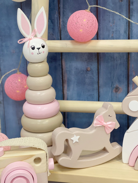 این راکر اسب چوبی بانمک و ملوس، با طراحی جذاب و قابلیت تکان خوردن، تجربهای سرگرمکننده و هیجانانگیز برای کودکان فراهم میکند 🎨💛