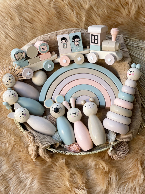 🎁 بولینگ چوبی حیوانات، هم یه بازی پرانرژی و آموزشی برای کودک شماست، هم یه دکوری فانتزی و خاص برای اتاق نوزاد 🧸🌈