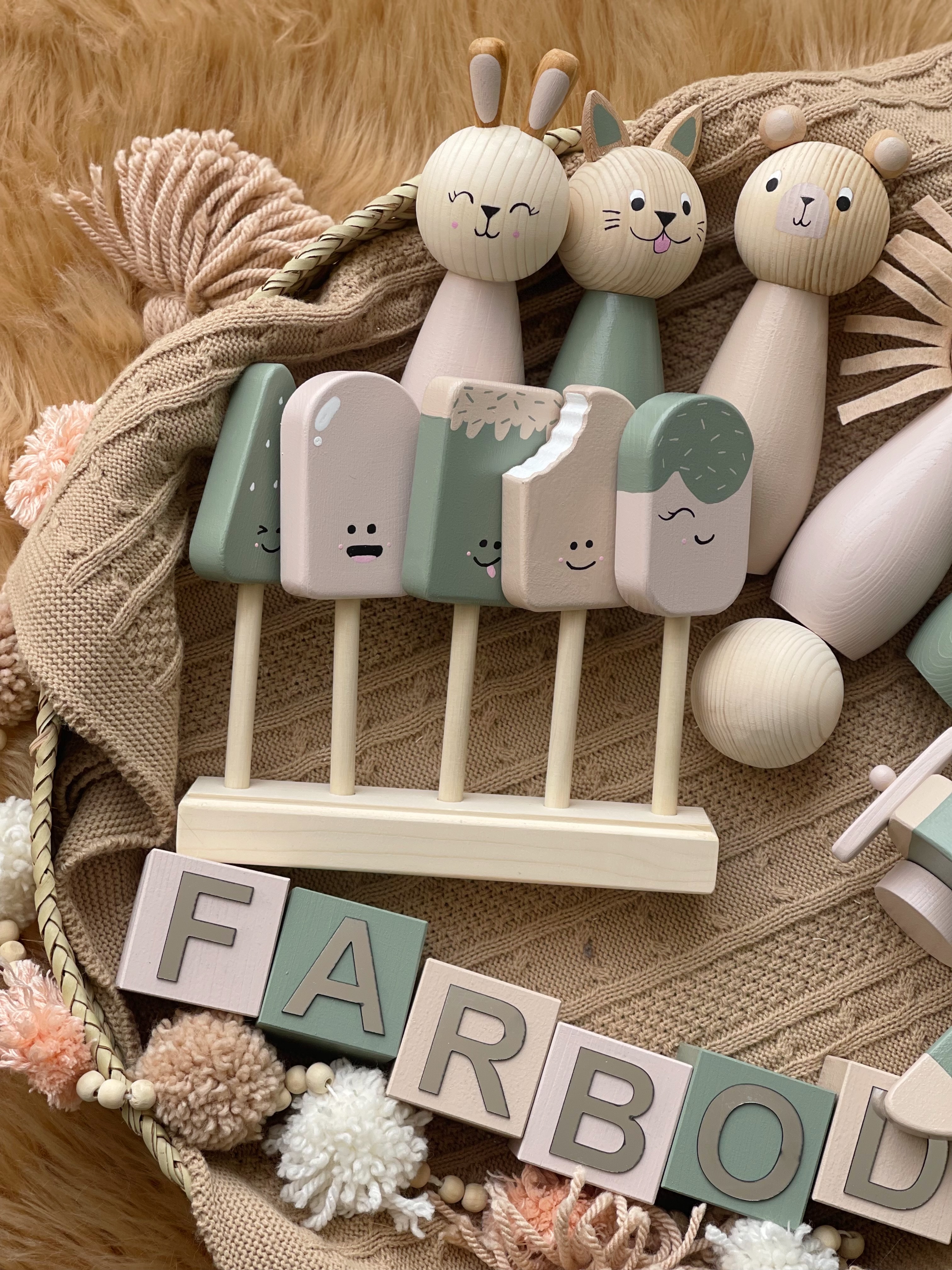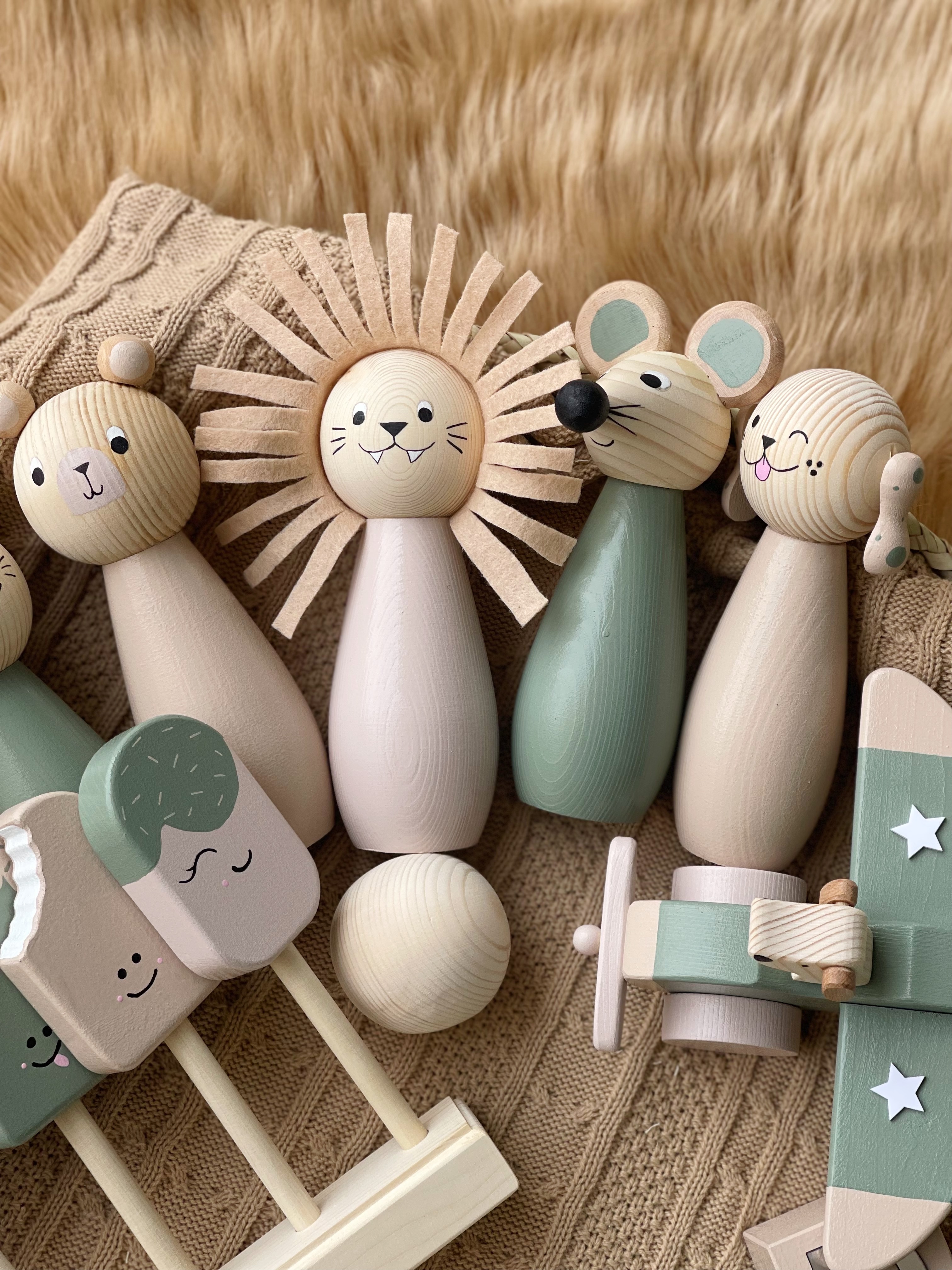 🎁 بولینگ چوبی حیوانات، هم یه بازی پرانرژی و آموزشی برای کودک شماست، هم یه دکوری فانتزی و خاص برای اتاق نوزاد 🧸🌈