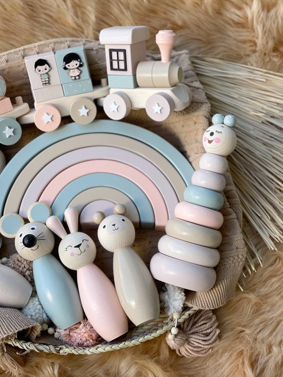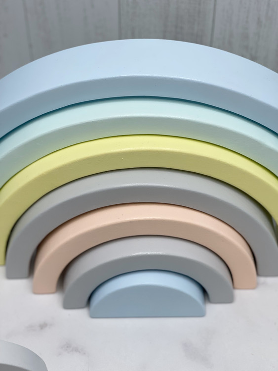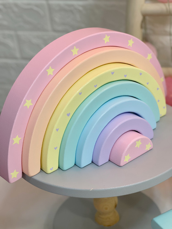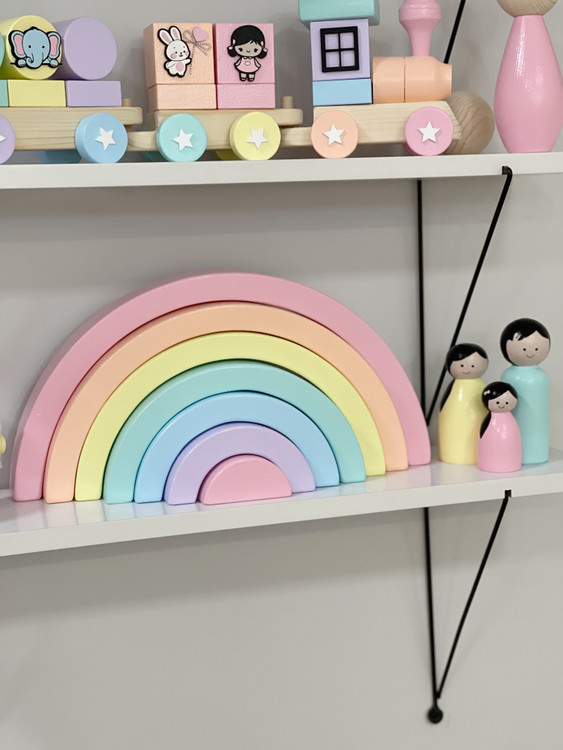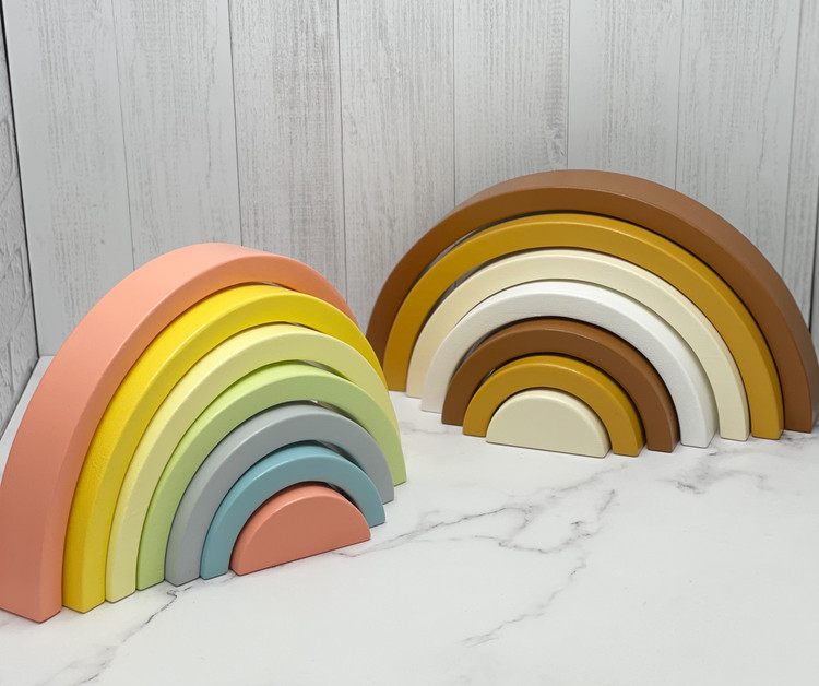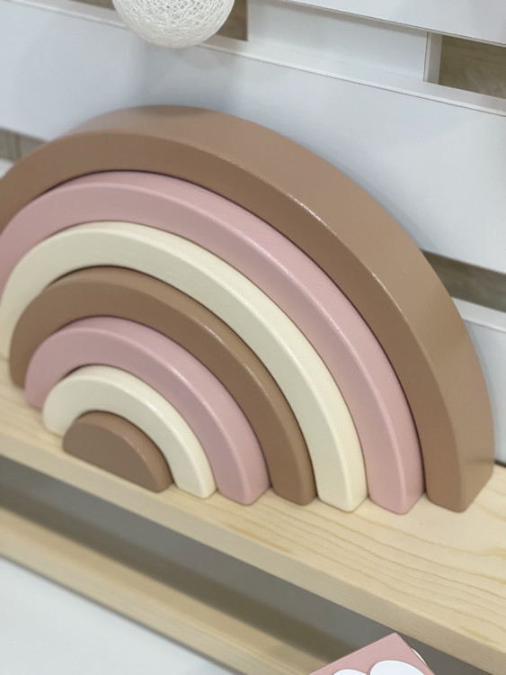رنگینکمان چوبی کلاسیک، از محبوبترین اسباببازیهای آموزشی و تزئینی در سبک مونتهسوریه.