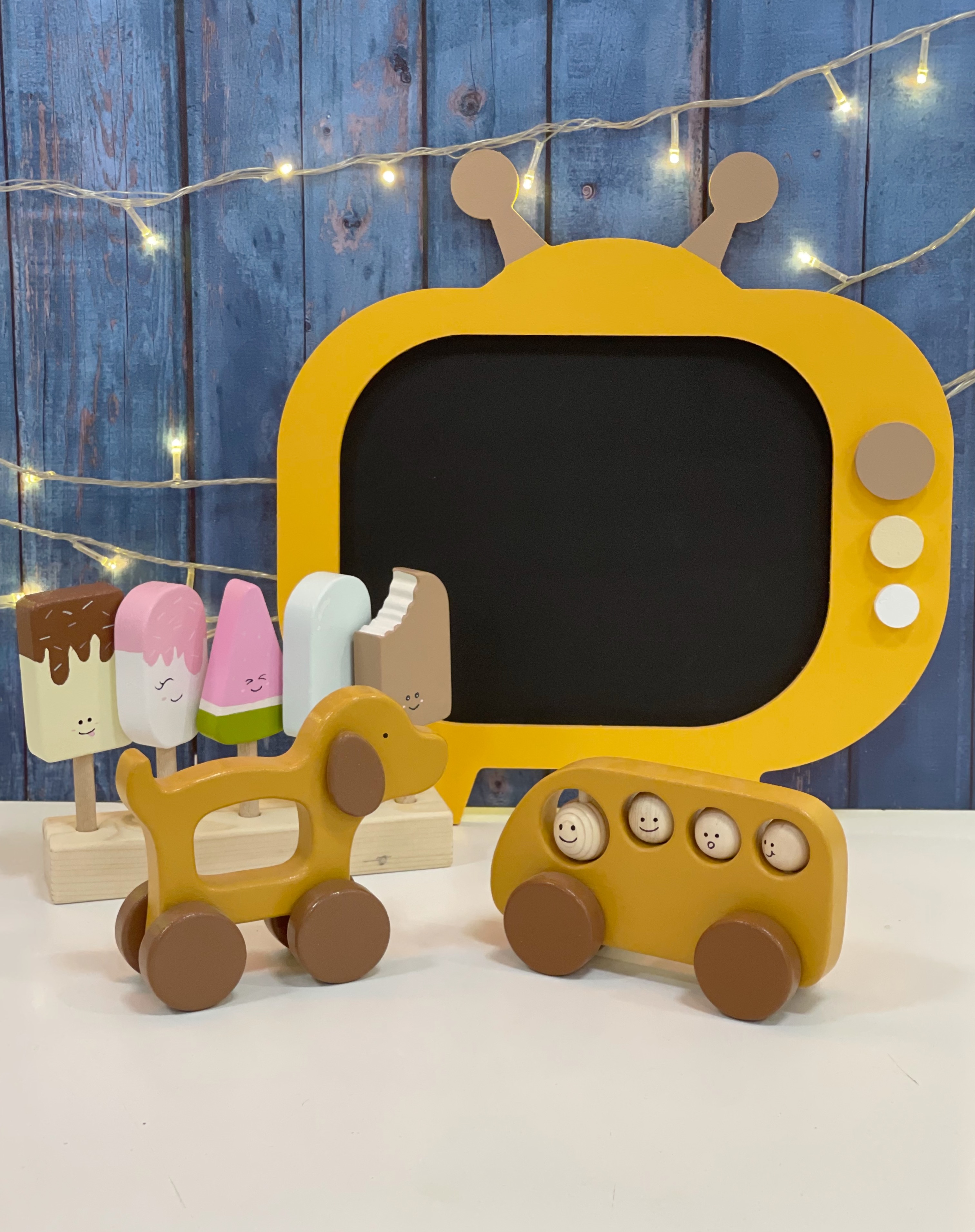 تخته سیاه تلویزیون استند اسم اتوبوس چوبی رنگهای شاد